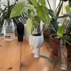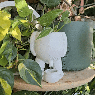 Il vous suffit de placer votre plante sur sa tête, d’arroser comme d’habitude, et de le laisser gérer le reste avec son style unique.